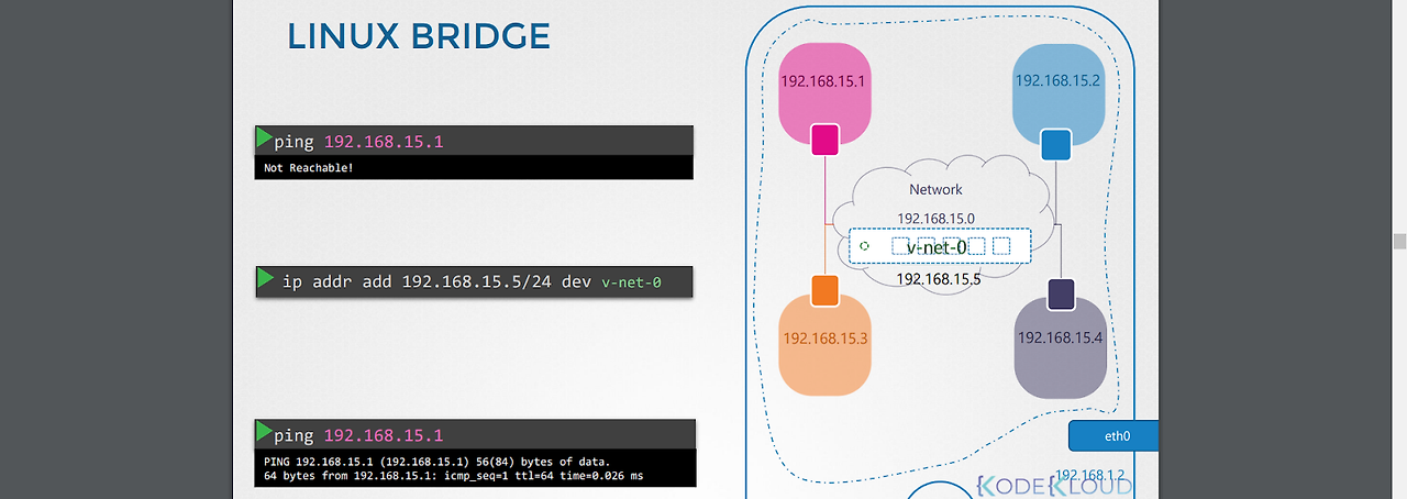 -이렇게 되면 결국 각 노드에 생성한 브리지 네트워크는 하나의 큰 단일 네트워크처럼 동작하게 되는 것이다.