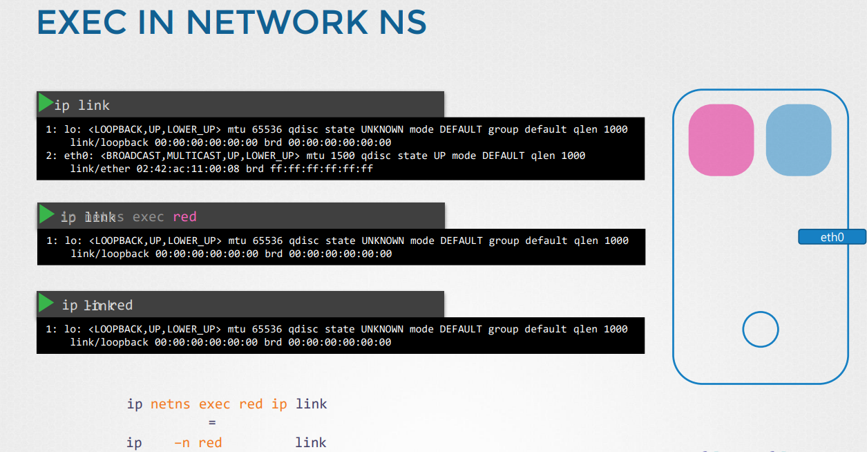 2.위 명령어로, 각 veth는 각각의 네트워크 네임스페이스에 할당한다.