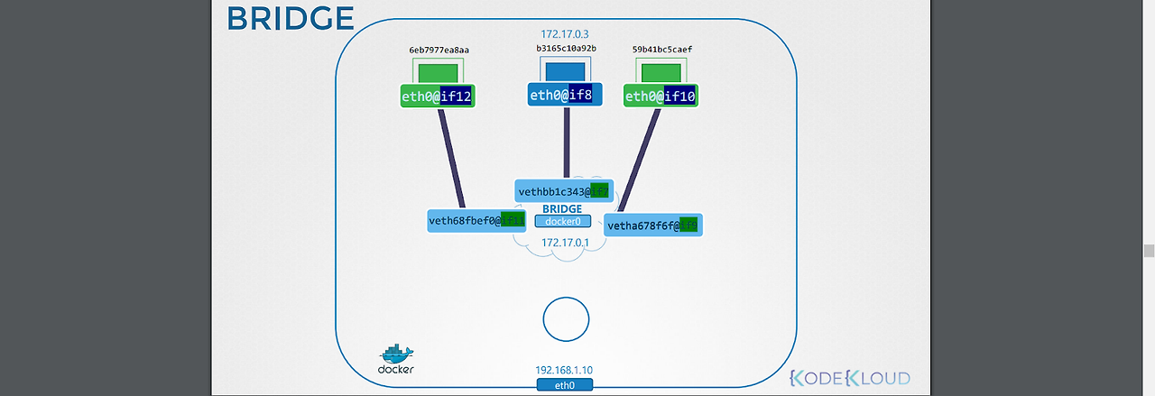1.컨테이너가 만들어지면 이를 포함하는 네트워크 네임스페이스가 생성된다.
